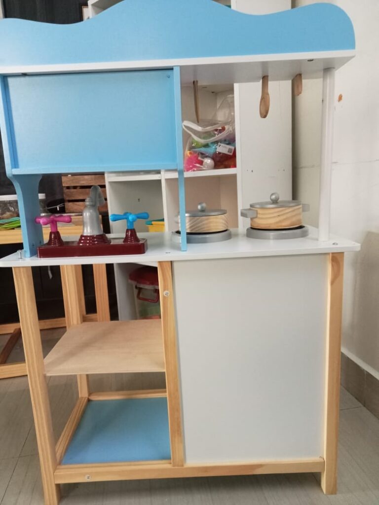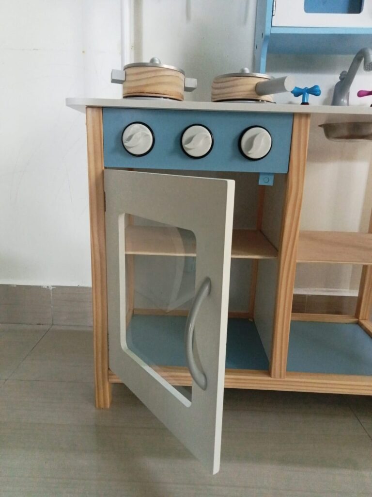 That is when I realised she needed her own play kitchen to fix a small snack for herself or just play around with it.