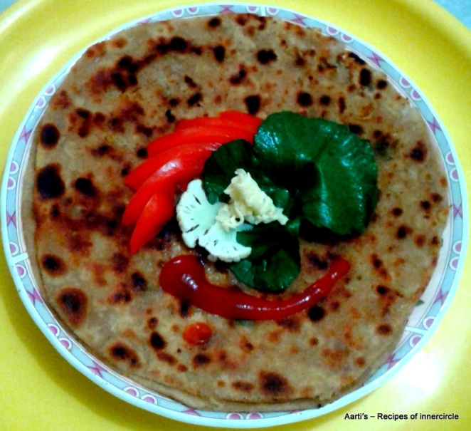 I had heard about it only on TV and usually wondered how somebody make paratha out of florets? How can be florets stuffed into dough, and then flatten it out ??? … won’t the dough break and florets come out of it…